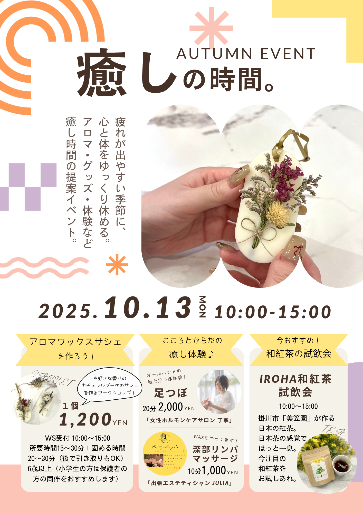 10/13(月祝) 「癒しの時間」イベント開催します!